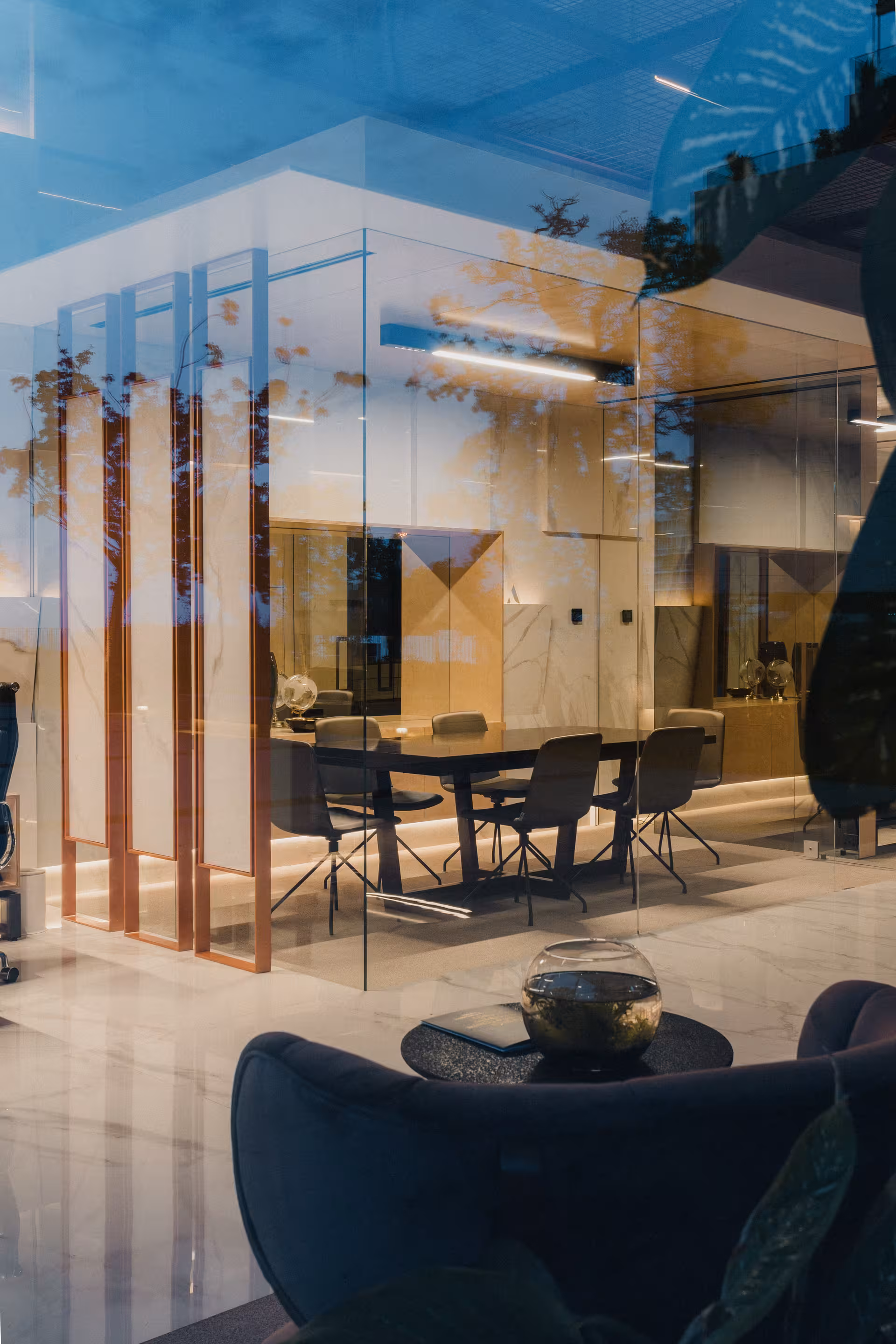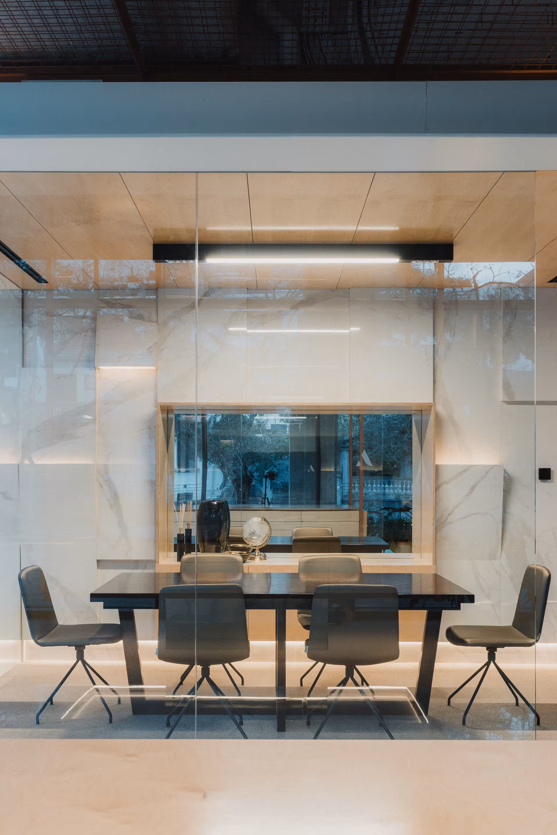 O showroom da AFA Imobiliária afirma-se como um exercício de arquitectura e design de interiores de carácter contemporâneo, onde a clareza espacial e o rigor formal reflectem valores de sofisticação e confiança associados ao universo imobiliário.