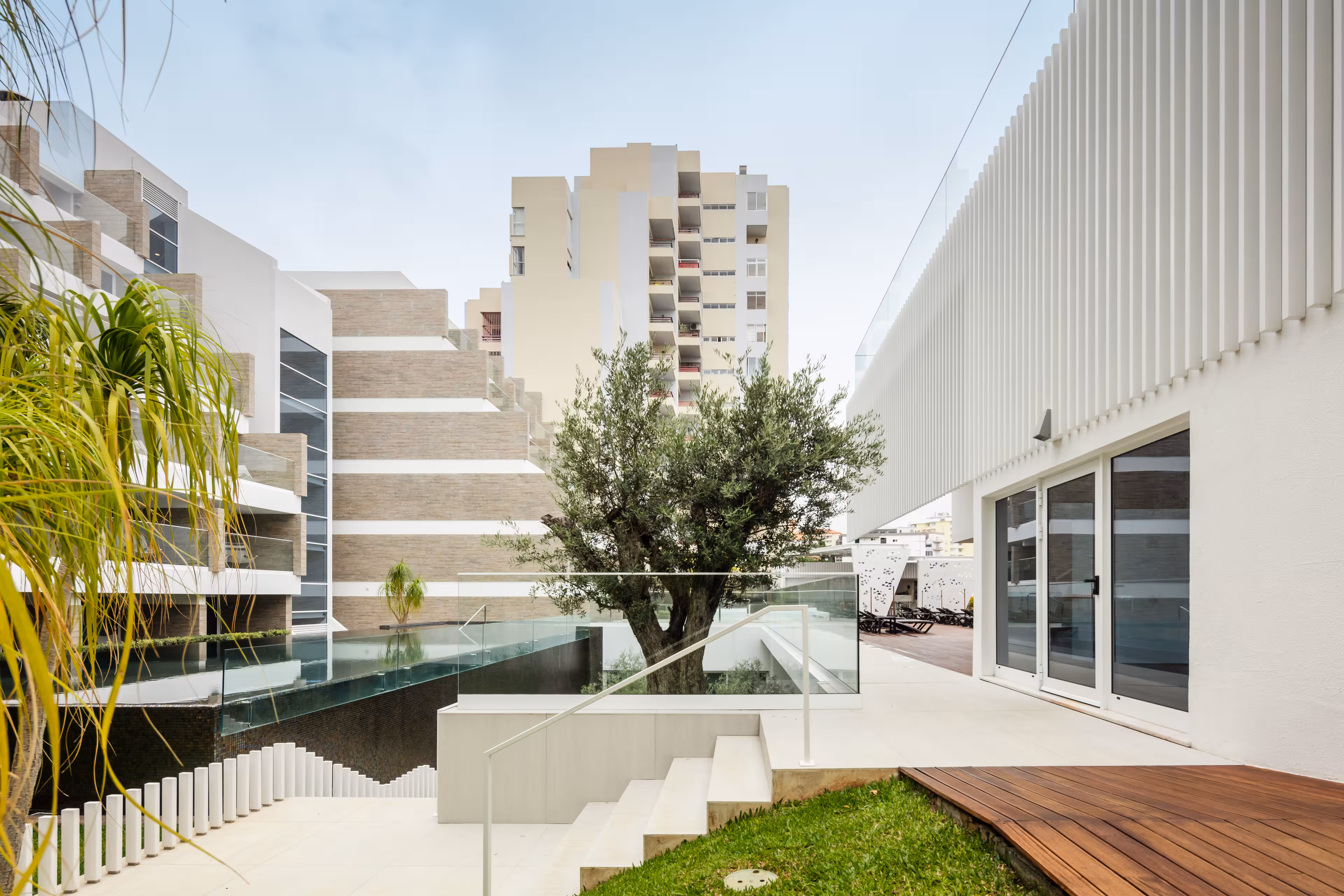 A intervenção adopta uma linguagem alinhada com os padrões contemporâneos da hotelaria de quatro estrelas, privilegiando uma arquitectura clara, equilibrada e intemporal. Valoriza-se a relação interior–exterior, a fluidez dos percursos e a criação de áreas de permanência qualificadas, onde água, vegetação e luz natural assumem um papel estruturante. O projecto integra ainda melhorias orientadas para sustentabilidade ambiental e eficiência energética, bem como a requalificação da imagem exterior e do espaço público adjacente, melhorando acessibilidades e percursos, sem alteração dos índices ou parâmetros urbanísticos em vigor.