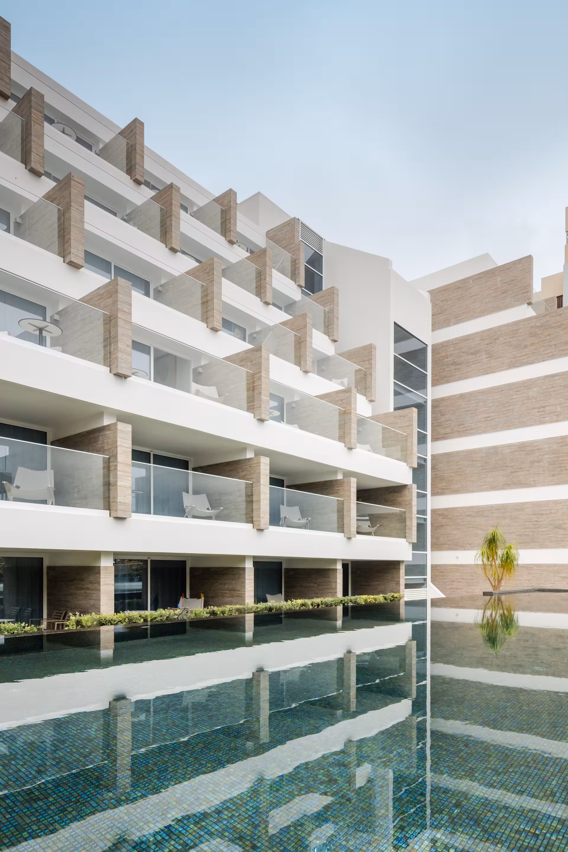 Os espaços comuns e de lazer — distribuídos pelos pisos 0, 1, 2, 3 e solário — são reconfigurados ao nível do programa, equipamento e imagem, reforçando atractividade e funcionalidade. Em paralelo, todos os quartos são remodelados com actualização de materiais e equipamentos e introdução de uma nova linguagem estética, tendo sido possível criar novos quartos sem aumento de volumetria ou alteração da fachada existente.